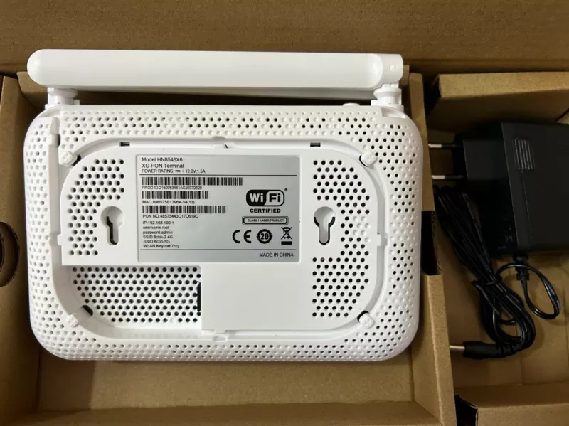 HS8346X6 DUAL BAND WIFI6 GPON ONU ONT FTTH е интелигентен Wi-Fi 6 рутинг-тип на оптички мрежен терминал (ONT). Овој модел користи Gigabit Passive Optical Network (GPON) технологија за да понуди ултра широкопојасен пристап, високи перформанси и широка покриеност за корисниците. Со високи перформанси за препраќање - обезбедувајќи исклучително искуство за гласовни, податоци и видео услуги со висока дефиниција (HD) - како и можности за поддршка на услуги ориентирани кон иднината и визуелизирано управување со мрежата, HS8346X6 им помага на претпријатијата да конструираат моќни решенија за целосно оптички пристап. Уредот има четири GE порти, еден POTS порт и еден USB порт и 2.4G и 5G Wi-Fi конекција.